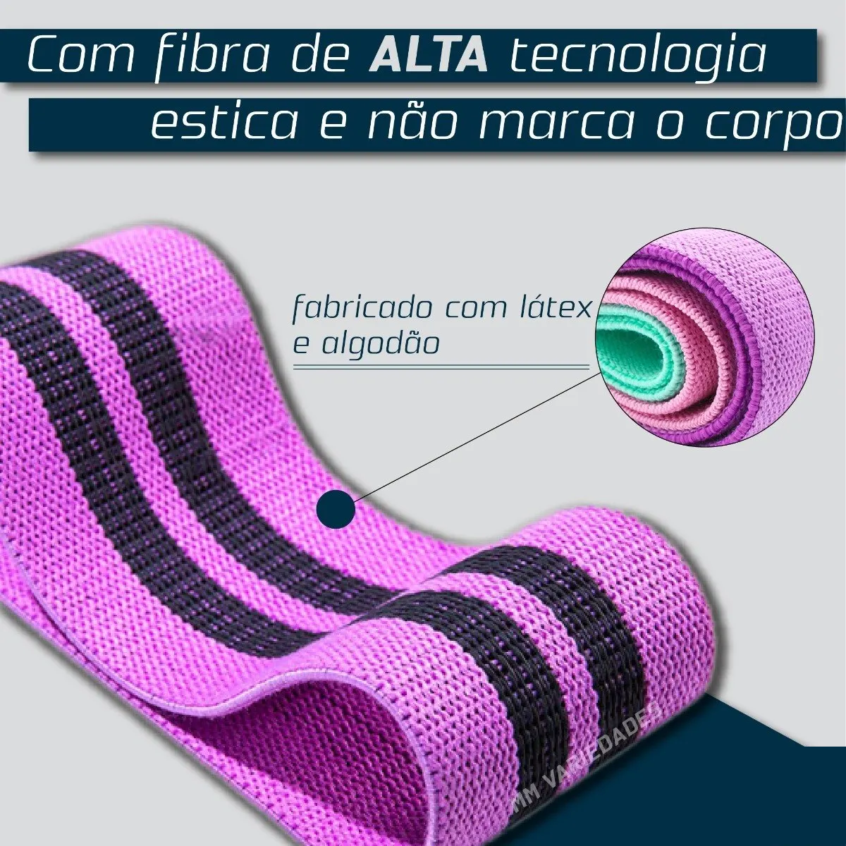 Kit 3 Faixas Elástica para Exercício são diferentes das mini bands de borracha pois são feitas de tecido macio que não agride sua pele e não escorregará durante a prática do exercício, sendo assim o seu ajuste é desnecessário durante o treino de levantamento ou agachamento.